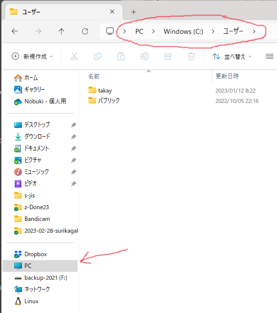 下図(エクスプローラ画面)のユーザーの中にあり.